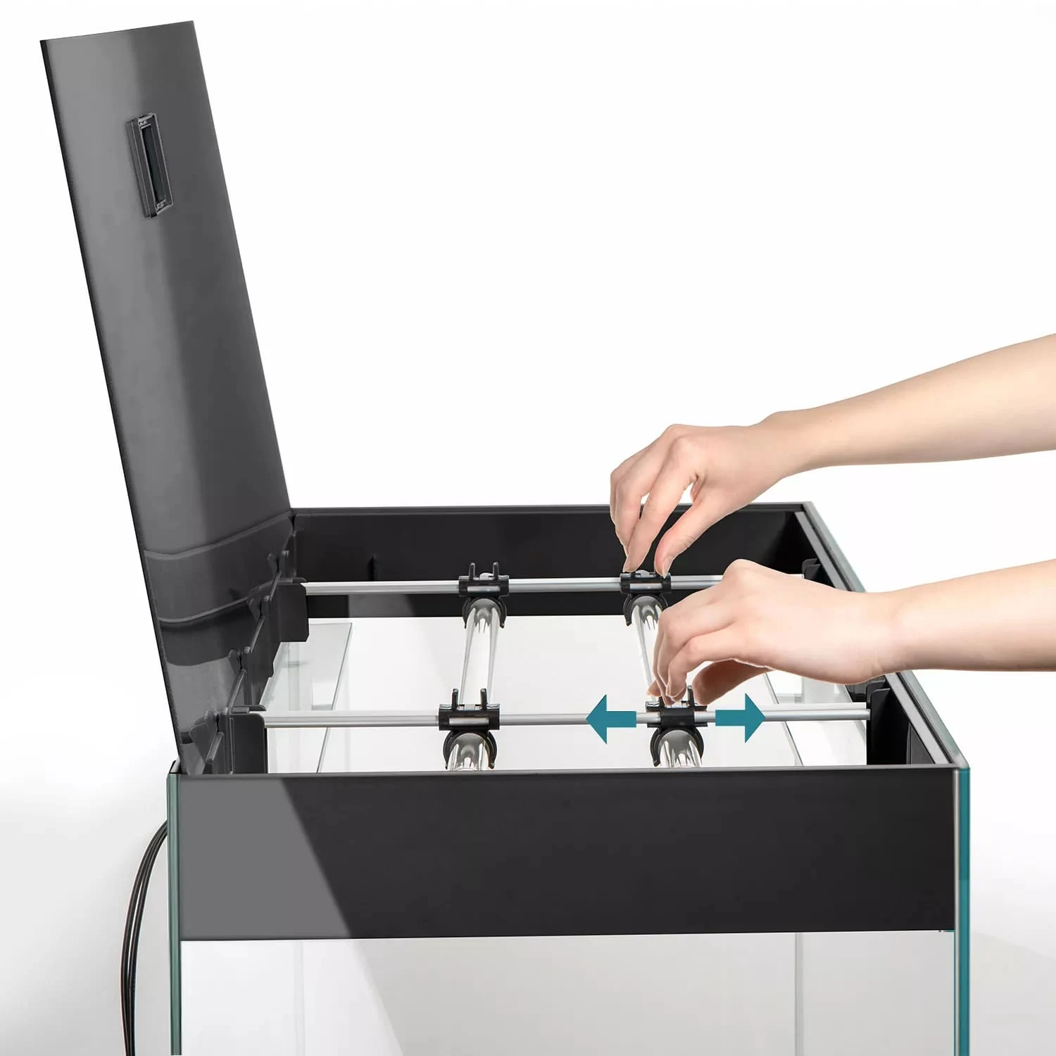 L’aquarium AQUAEL Glossy 150 LED 2.0 Noir laqué a été très bien conçu pour faciliter son installation et son utilisation. Des ouvertures larges ont été prévues pour le passage des tuyaux de filtration ou des fils électriques. L’accès par le haut de l’aquarium est très facile grâce aux volets rabattable et à la rampe coulissante. Une trappe de nourrissage est intégrée au volet pour simplifier l’apport d’aliment à vos poissons ou pour installer un distributeur de nourriture automatique.