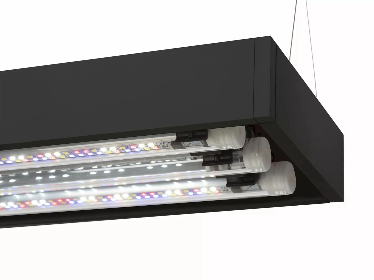 - Équipé d’un tube LEDs Sunny Day&Night 7000°K (1050 lumens) et 2 tubes LEDs Plants 9000°K (730 lumens chacun)