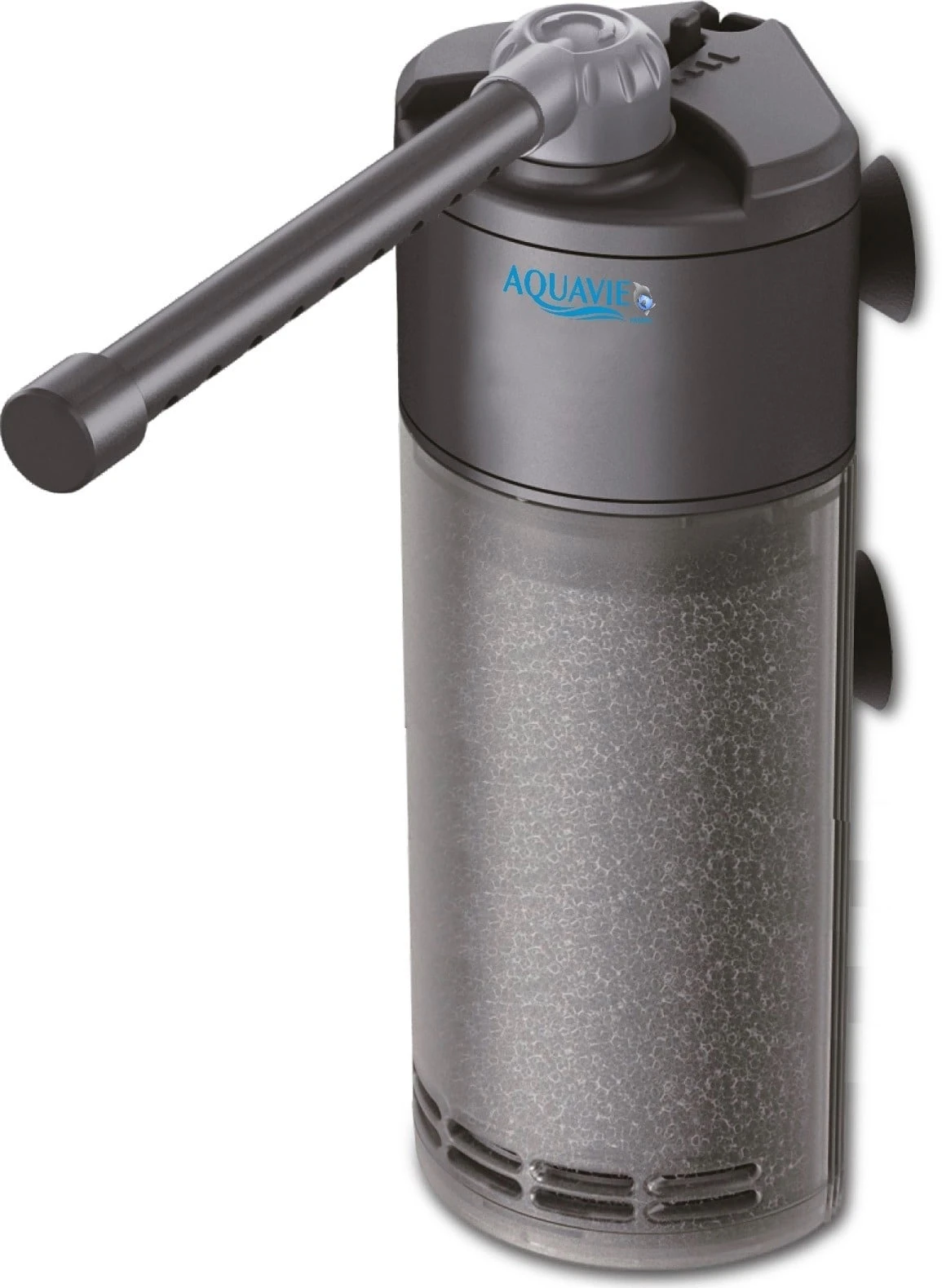 La conception triangulaire du filtre interne AQUAVIE V600 le rend facile à placer dans un coin de l’aquarium se qui permet d’économise de l’espace dans la cuve.