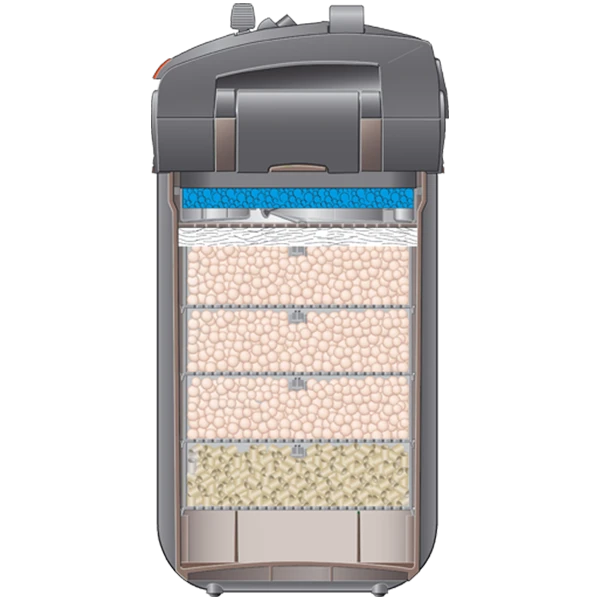 Le filtre externe EHEIM 2078 professionel 5e 700 est doté d’une de pompe ultra perfectionné avec un système électronique qui contrôle toutes les fonctions de filtration et maintient un flux d’eau constant. Lorsque les masse filtrante commence à saturer, la pompe augment automatiquement sont débit pour éviter toute perte d’efficacité. De cette manière, les fréquences de nettoyage des matériaux filtrants biologiques et mécaniques sont considérablement espacés.