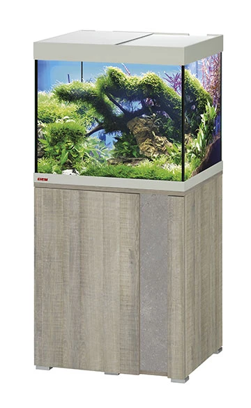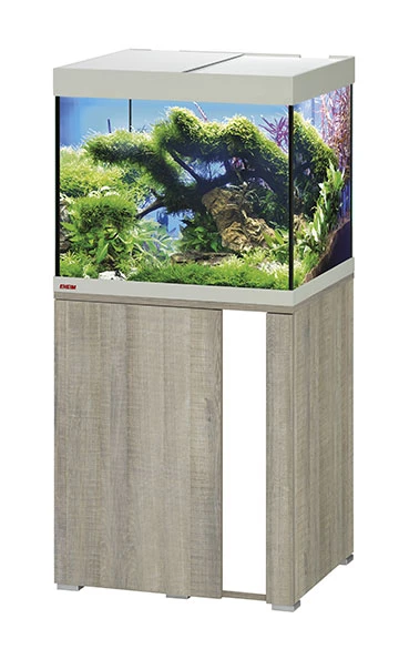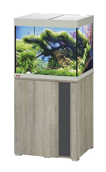EHEIM Vivaline LED 150 L est un ensemble comprenant un aquarium de 60 cm avec meuble Chêne Gris, éclairage LEDs 2 x 12W, chauffage de 100W et filtre interne BioPower 200.