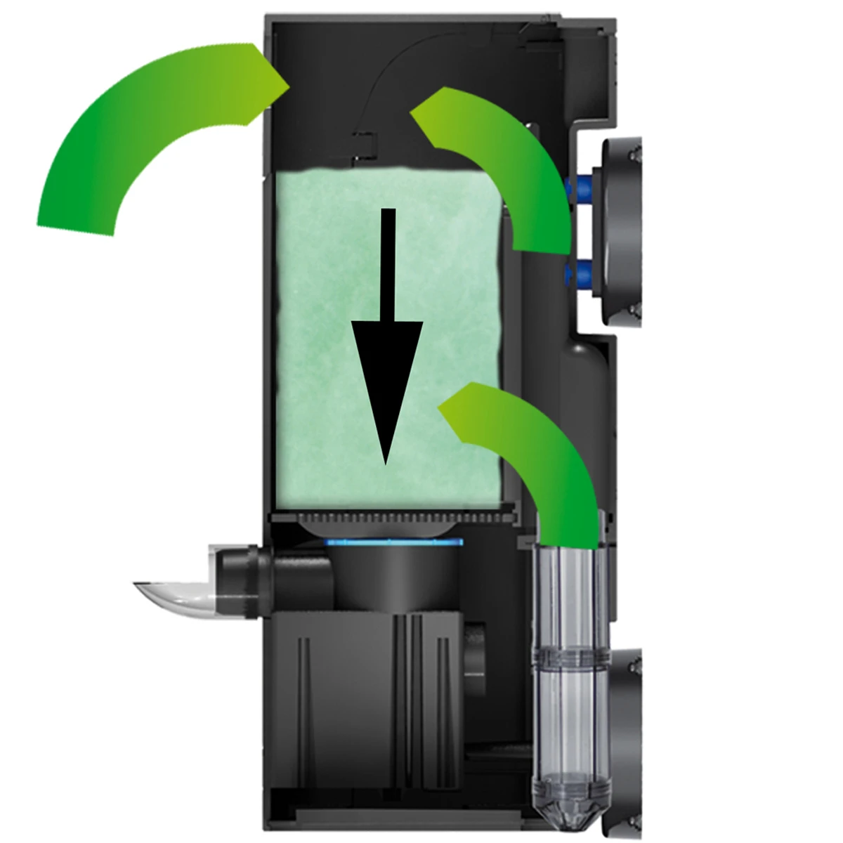 Il est aussi un filtre universel interne pour tous types de médias de filtration. Il suffit de remplacer deux pièces dans le filtre (livrées de série) et le TUNZE Multifilter 3168 se transforme en filtre universel avec un volume interne de filtration de 1200 cm3. Il peut être alors complété par de l’ouate de filtration, du charbon actif en vrac ou tout type de média de filtration, assurant la filtration principale d‘un aquarium de 200 à 500 litres mais aussi une filtration complémentaire pour un traitement ciblé (zéolithes, charbon, etc.) dans des installations plus conséquentes.